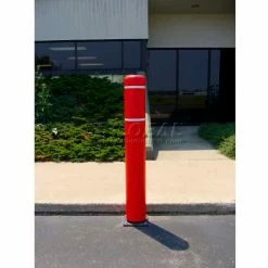 FlexPost 52"H FlexBollard with 8"H Sign Post – Natural Ground Installation – Yellow Cover/Red Tapes