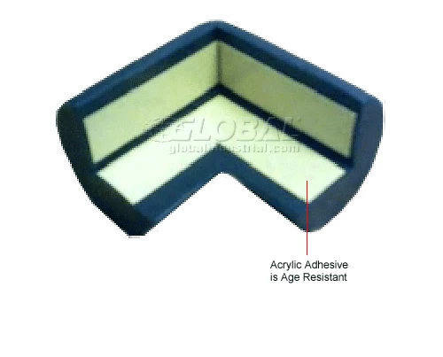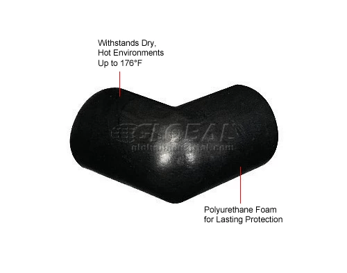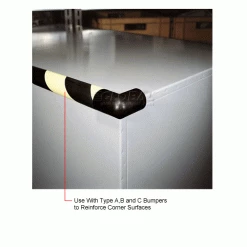 These soft cushioned bumper guards protect surfaces and reduce impact. Bumper cushioning is made with recyclable polyurethane foam that resists dry, hot environments from 80° to 176°F. Durable acrylic adhesive is age resistant. Black Protective Corners can be used with Type A, B & C bumpers to reinforce corner surfaces. These end caps create continuous bumpers that can be used on sharp furniture corners.