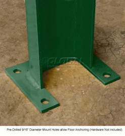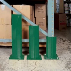These post protectors serve as a pallet rack guard to improve plant safety and efficiency. The guards provide pallet rack protection and reduce building repairs due to accidental impact and collisions. Guards are made using heavy gauge steel with a durable powder coat finish. Units fit around rack posts up to 4″W. Includes four pre-drilled 9/16″ mount holes that allow floor anchoring for installation (hardware not included). Base plates measure 7-1/2″L x 6″W. Green color finish.