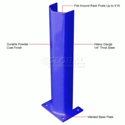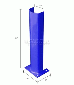 These post protectors serve as a pallet rack guard to improve plant safety and efficiency. The guards provide pallet rack protection and reduce building repairs due to accidental impact and collisions. Guards are made using heavy gauge steel with a durable powder coat finish. Units fit around rack posts up to 4″W. Includes four pre-drilled 9/16″ mount holes that allow floor anchoring for installation (hardware not included). Base plates measure 7-1/2″L x 6″W. Blue color finish.