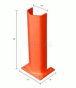These post protectors serve as a pallet rack guard to improve plant safety and efficiency. The guards provide pallet rack protection and reduce building repairs due to accidental impact and collisions. Guards are made using heavy gauge steel with a durable powder coat finish. Units fit around rack posts up to 4″W. Includes four pre-drilled 9/16″ mount holes that allow floor anchoring for installation (hardware not included). Base plates measure 7-1/2″L x 6″W. Orange color finish.