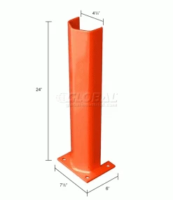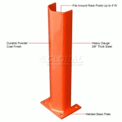 These post protectors serve as a pallet rack guard to improve plant safety and efficiency. The guards provide pallet rack protection and reduce building repairs due to accidental impact and collisions. Guards are made using heavy gauge steel with a durable powder coat finish. Units fit around rack posts up to 4″W. Includes four pre-drilled 9/16″ mount holes that allow floor anchoring for installation (hardware not included). Base plates measure 7-1/2″L x 6″W. Orange color finish.