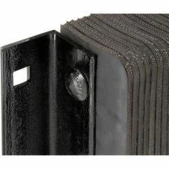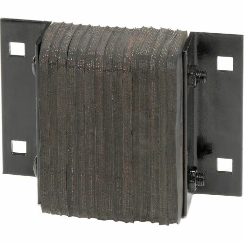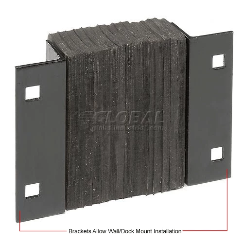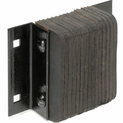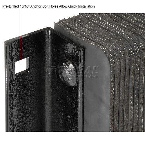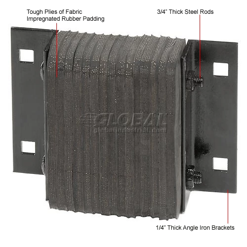 Tough plies of fabric impregnated rubber pads are compressed and secured by 3/4″ thick steel rods and mounted to 1/4″ thick angle iron brackets. Absorbs over 80% of the impact force. Pre-drilled 13/16″ anchor bolt holes offer quick installation. Allow 12″ between each bumper for dependable protection. 5 Year Limited Warranty.