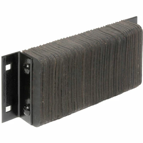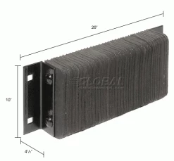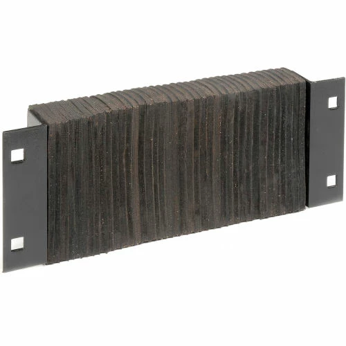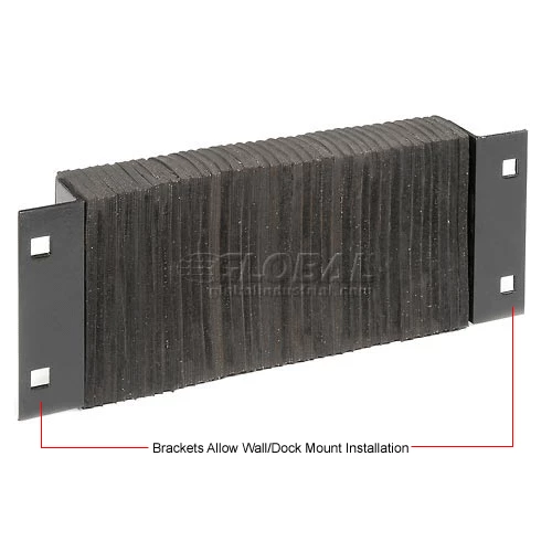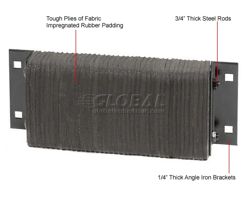 Tough plies of fabric impregnated rubber pads are compressed and secured by 3/4″ thick steel rods and mounted to 1/4″ thick angle iron brackets. Absorbs over 80% of the impact force. Pre-drilled 13/16″ anchor bolt holes offer quick installation. Allow 12″ between each bumper for dependable protection. 5 Year Limited Warranty.