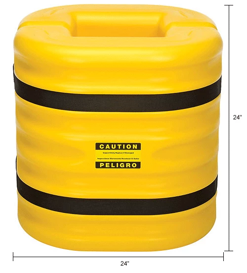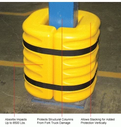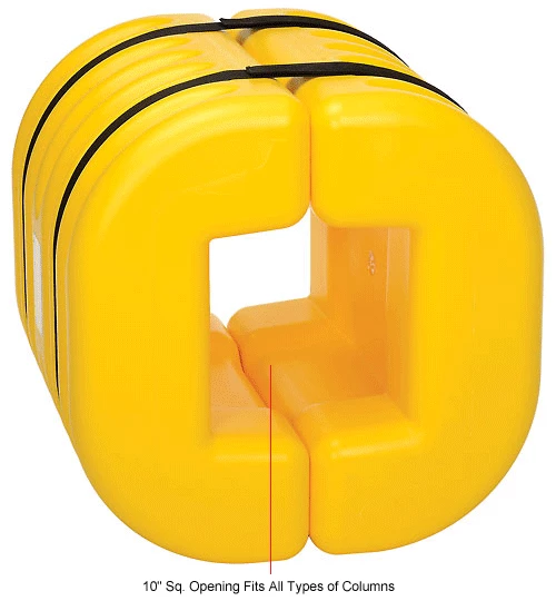 Mini Column Protectors are perfect for affordable warehouse and factory protection under fire extinguishers and absorb impact from tow motors, minimizing column and fork truck damage. Column guards absorb impacts up to an 8,500 pound fork truck, at 5 mph. These blow-molded, 100% high density polyethylene protectors, feature key-locks to precent slippage and assist installation alignment. Two halves attach with easy-to-use straps with no tools required. These models are designed to fit 6″, 8″, 10″ and 12″ round or square columns.