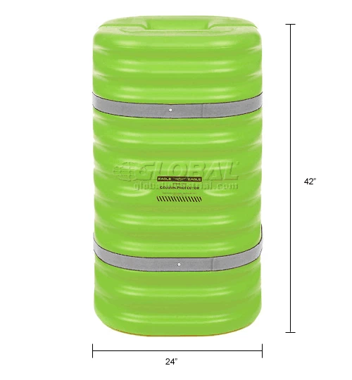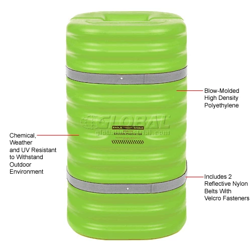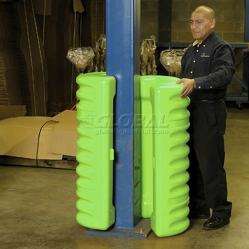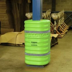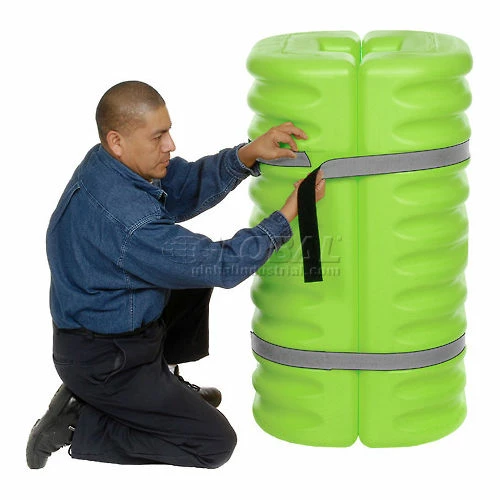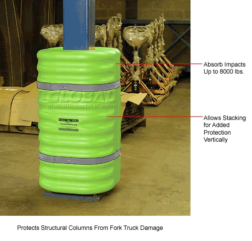 Protect structural columns, fork trucks and other valuable equipment from costly damage and reduce personal injuries with these blow-molded high density polyethylene column protectors. Column guards absorb impacts up to an 8,500 pound fork truck, at 5 mph. Column protectors are weather, chemical and UV resistant. Stackable to expand protection vertically. Fits all types of columns. Column protectors install in seconds with 2 reflective straps.