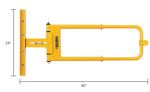 Customize your safety railings with self-closing steel gates for greater access protection to equipment and entry points. The Global Industrial Adjustable Safety Swing Gate with a 24″- 40″W opening enables added security for facilities in commercial, industrial and similar industries. Simply connect to the rails from the left or right with the included mounting hardware. Solid steel tubing for strong durability. Standard yellow finish provides high visibility near any rail and offers a clean look when mounted to rails of a similar color. Meets OSHA 1910.23a requirements. 1 Year Limited Warranty.