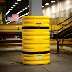 Protect columns in your facility with the Global Industrial™ Yellow Column Protector, which provides strong impact-resistance for facilities where vehicles transport materials for storage, distribution, and more. Each column protector is made of high-density polyethylene and are designed to absorb forklift and tow-motor impacts, minimizing column and machinery damage, and preventing personnel injury. Includes 2 black straps for installation ease. Color finish is Yellow.