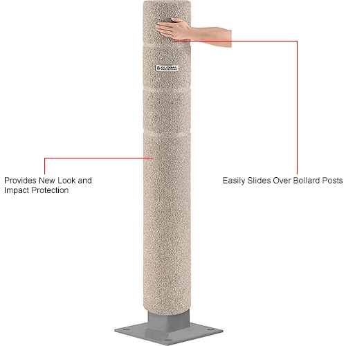 Keep bollard protection simple with the Global Industrial™ Decorative Bollard Cover. Covers are ideal for protecting bollards that are susceptible to high traffic areas where vehicles and mobile equipment are in constant circulation. This is a cover made of strong rotomolded plastic and features a smooth style for a neat appearance that fits over existing bollards like a second skin.