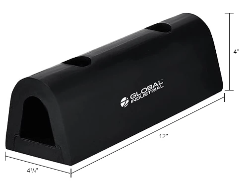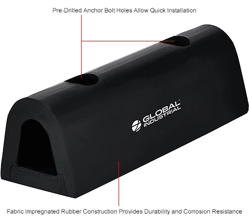Protect loading docks from damage and the heavy impact of semi-trailers and trucks with the Global Industrial Extruded Rubber Fender Bumper. These extruded fender bumpers are made of durable, all-weather and abrasion-resistant rubber. Their half-oval shape allows for more effective protection of the fenders and cover a wide radius. A metal plate, located inside each bumper, adds additional support. Each of the two 7/8″ mounting holes are located 3″ from either end of the bumper for easy installation. Installation hardware sold separately. 1-Year Limited Warranty.