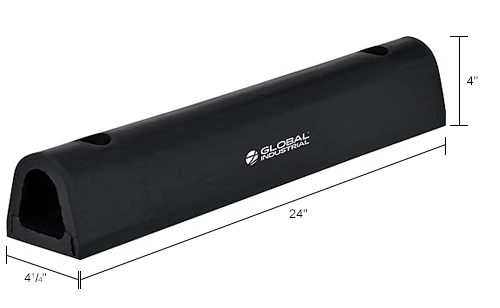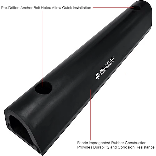 Protect loading docks from damage and the heavy impact of semi-trailers and trucks with the Global Industrial Extruded Rubber Fender Bumper. These extruded fender bumpers are made of durable, all-weather and abrasion-resistant rubber. Their half-oval shape allows for more effective protection of the fenders and cover a wide radius. A metal plate, located inside each bumper, adds additional support. Installation is easy with pre-drilled 7/8″ mounting holes. Installation hardware sold separately. 1-Year Limited Warranty.