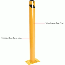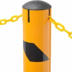Provide equipment protection and designate where industrial vehicles cannot enter with The Global Industrial Steel Bollard. Topped with a removable plastic cap, the bollard can be filled with concrete for reinforcement. The top features chain slots that allow steel chains (sold separately) to pass through openings and create a barrier. This bollard is ideal for protecting doorways, corners, and industrial equipment. All welded steel construction. Safety yellow powder coat finish provides strong visibility.