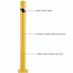 If your warehouse space needs a trusty steel bollard, the Global Industrial Floor Mount Safety Bollard is your solution. Ideal for use in indoor parking lots where vehicles need restrictive boundaries, this bollard is also suitable for protecting doorways, corners, and industrial equipment. All welded steel construction. Safety yellow powder coat finish provides strong visibility.