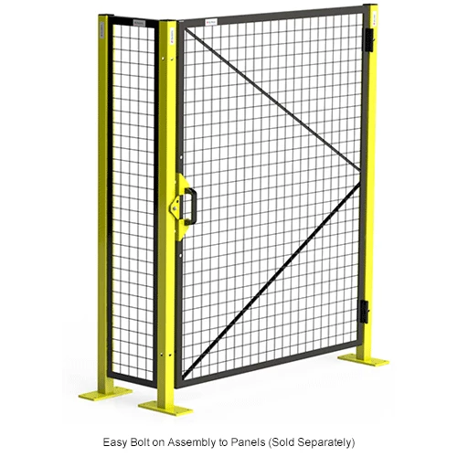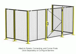 Protect your workforce from hazardous machinery with the Global Industrial™ 4′ W Machine Wire Guard Door. Equipped with a 10-gauge welded wire design that’s attached to a durable 13-gauge angle frame, this machine wire guard door increases visibility in areas like weld cells, laser cutting operations, and metal stamping and folding areas. Customize your safety enclosure with matching black panels (model numbers 800483BK, 800484BK, 800485BK, 800486BK, 800487BK, 800488BK, 800489BK, and 800490BK) and bright yellow posts (model numbers 800482YL and 800492YL) to call attention to high-risk areas. OSHA and ANSI/RIA R15.06-2014 compliant. 1 Year Limited Warranty. Measures: 9′ W x 5′ H.