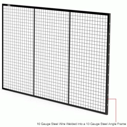 Protect your workforce from hazardous machinery with the Global Industrial™ 8′ W Machine Wire Guard Panel. Equipped with a 2″ x 2″ 10-gauge welded wire design that’s attached to a durable 13-gauge angle frame, this panel increases visibility in areas like weld cells, laser cutting operations, and metal stamping and folding areas. Customize your safety enclosure even further with compatible Global Industrial™ bright yellow posts (model numbers 800482YL and 800492YL). OSHA and ANSI/RIA R15.06-2014 compliant. 1 Year Limited Warranty. Measures: 8′ W x 5′ H.