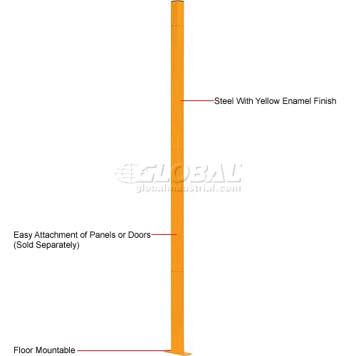 Configure even the oddest storage spaces using posts. Posts are 72″H x 2″ square. Panels, corner or door attach to post 1 foot above floor for sweep space. Bright yellow enamel finish. Mounting plate measures 6″x2″. Two holes distance from center to center is 4.01″. Hole diameter 0.415″. Sold per each post. Hardware sold separately, refer Model 270015.
