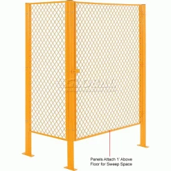 Provides a barrier between employees and potential hazards. Durable woven 10 gauge wire construction provides clear visibility. Partitions can be easily installed for quick removal or more permanently for maximum security with hardware (sold separately, refer Model 270015). Panels measure 5’H and attach to post 1′ above floor for sweep space. Easy to install, remove or expand. Bright yellow enamel finish.
