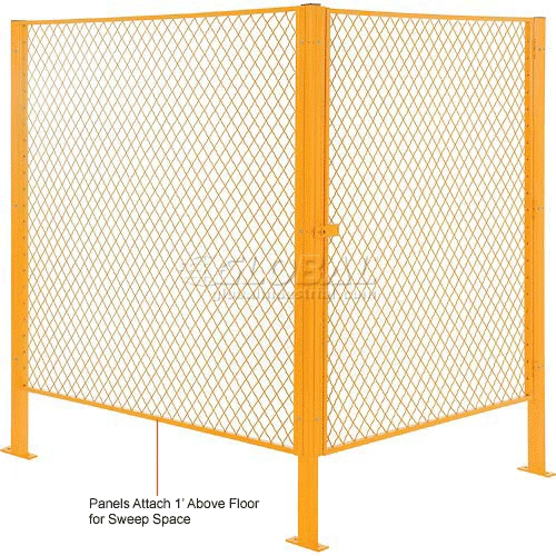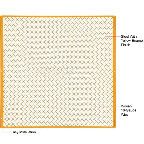 Provides a barrier between employees and potential hazards. Durable woven 10 gauge wire construction provides clear visibility. Partitions can be easily installed for quick removal or more permanently for maximum security with hardware (sold separately, refer Model 270015). Panels measure 5’H and attach to post 1′ above floor for sweep space. Easy to install, remove or expand. Bright yellow enamel finish.