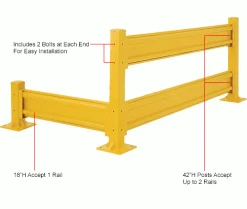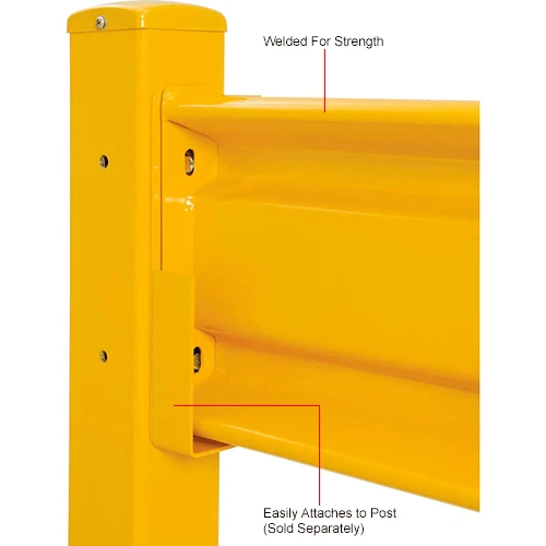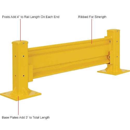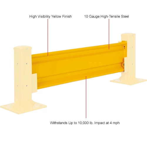 The Global Industrial Protective Steel Guard Rail is ideal for creating complete guard rails systems around stations, walls, or other locations that need protection from forklift traffic. This steel guard rail helps protect both personnel and property using a ribbed 10-gauge high-tensile steel. Hardware included with barrier rail to allow easy installation to posts and can easily be dropped-in without the use of tools using Optional Drop-In Brackets sold separately). Highly visible safety yellow finish.