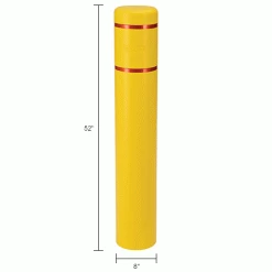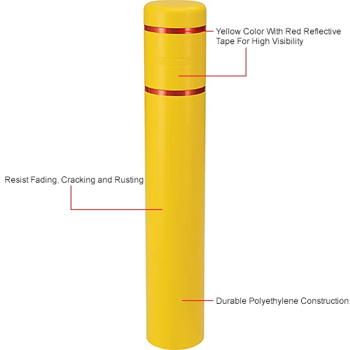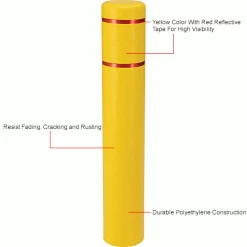 The Global Industrial Reflective Bollard Sleeve is here to provide bollard protection. Bollard sleeves are ideal for adding extra protection and visibility to bollards that are susceptible to high traffic areas where vehicles and mobile equipment are in constant circulation. This sleeve is made of strong HDPE blow mold material and features a smooth style for a neat appearance that fits over existing bollards like a second skin. Bright red tape adds high visibility to the bollard sleeve.