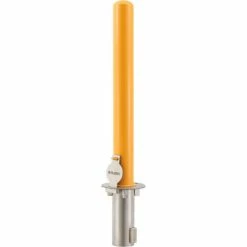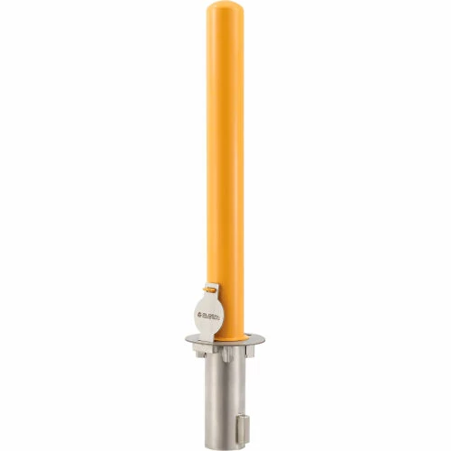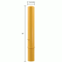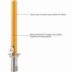 The Global Industrial Removable Safety Bollard is made for industrial spaces that need durable, easily removable bollards. Ideal for forklifts seeking protection in high traffic areas and other spaces that need to designate a clear marked boundary, this steel bollard can be placed in parking lots, alongside drive-through lanes, or in outdoor parks with paved sidewalks. This bollard features a user-friendly embedment sleeve that has a smooth hinged lid. The design of the lid allows the unit to secure easily in place with the use of a padlock. It also features a removable base that can release the bollard whenever the surrounding area requires more or less guard restrictions. This bollard is installed 12″ into the ground.