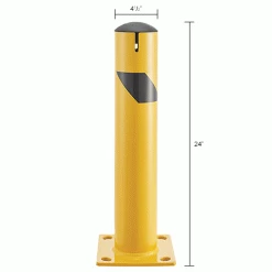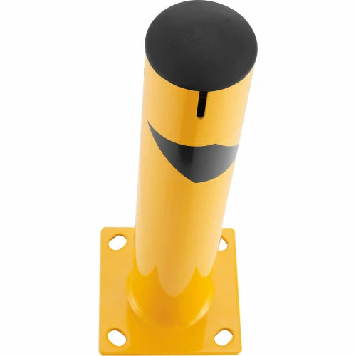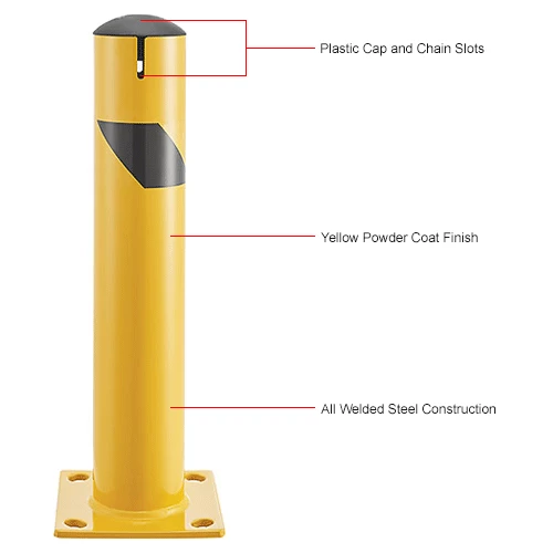 Provide equipment protection and designate where industrial vehicles cannot enter with The Global Industrial Steel Bollard with Chain Slots & Removable Cap. This bollard is ideal for protecting doorways, corners, and industrial equipment. All welded steel construction. Safety yellow powder coat finish provides strong visibility.