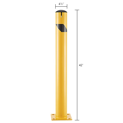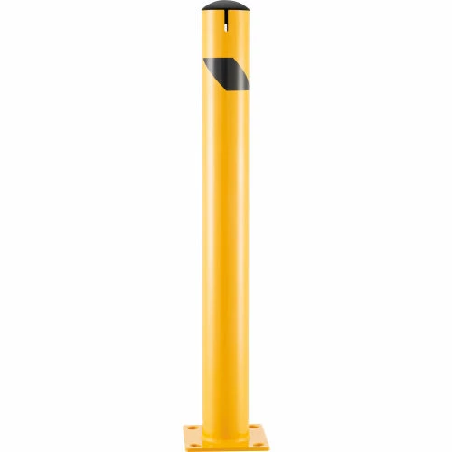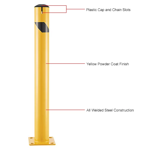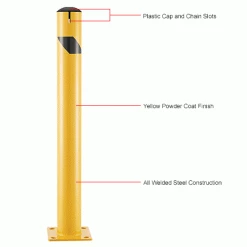 Provide equipment protection and designate where industrial vehicles cannot enter with the Global Industrial Steel Bollard with Chain Slots & Removable Cap. This bollard is ideal for protecting doorways, corners, and industrial equipment. All welded steel construction. Safety yellow powder coat finish provides strong visibility.