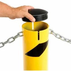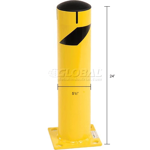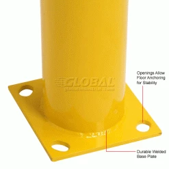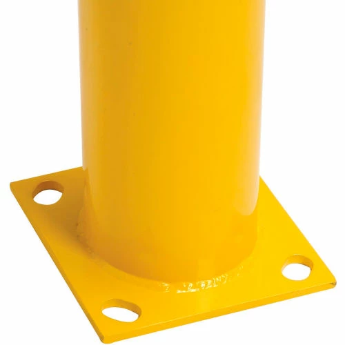 The heavy duty steel welded construction makes these traffic bollards ideal for protecting personnel, racking and machinery indoors or out. Topped with a removable plastic cap, bollards can be filled with concrete for reinforcement. Base plates include 4 openings for mounting bolts (sold separately). High visibility yellow powder coat finish. This style is designed to install on existing concrete floors.