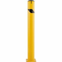 Provide equipment protection and designate where vehicles cannot enter with The Global Industrial Steel Bollard. Topped with a removable plastic cap, the bollard can be filled with concrete for reinforcement. The top features chain slots that allow steel chains (sold separately) to pass through openings and create a barrier. This bollard is ideal for protecting doorways, corners, and industrial equipment. All welded steel construction. Safety yellow powder coat finish provides strong visibility.