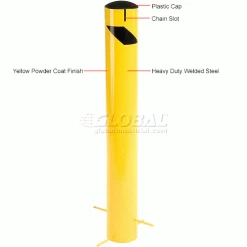 Global Industrial Steel Bollard W/Removable Plastic Cap & Chain Slots For Underground 5.5×42