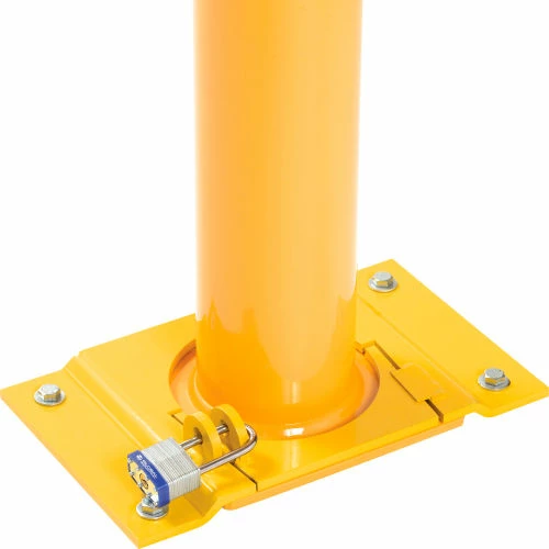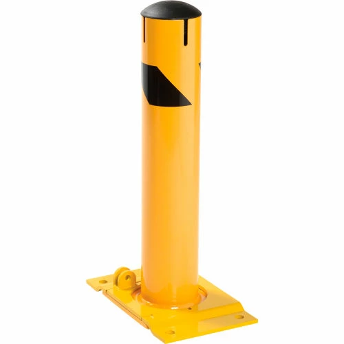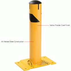 Provide equipment protection and designate where industrial vehicles cannot enter with The Global Industrial Steel Bollard with Chain Slots & Removable Cap. This bollard is ideal for protecting doorways, corners, and industrial equipment. All welded steel construction. Safety yellow powder coat finish provides strong visibility.