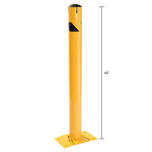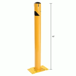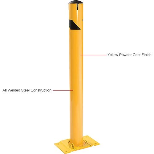 Provide equipment protection and designate where industrial vehicles cannot enter with the Global Industrial Steel Bollard with Chain Slots & Removable Cap. This bollard is ideal for protecting doorways, corners, and industrial equipment. All welded steel construction. Safety yellow powder coat finish provides strong visibility.