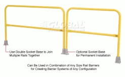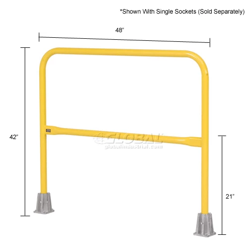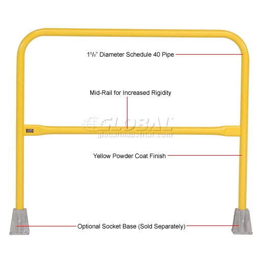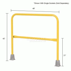 Ideal for directing personnel or traffic flow. Heavy-duty 1-5/8″ diameter 42″ high steel pipe frame with mid-rail for rigidity. For permanent installations, order single or double sockets to form a straight row or angles up to 10 degrees to create a curved barricade. Use free standing base with or without casters for portability. Long lasting safety yellow finish.