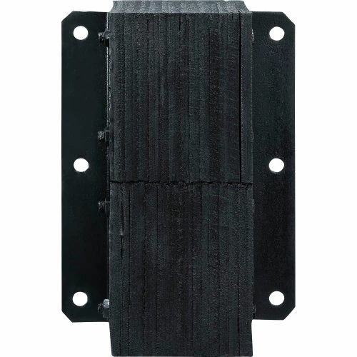 Tough plies of fabric impregnated rubber pads are compressed and secured by 3/4″ thick steel rods and mounted to 1/4″ thick angle iron brackets. Absorbs over 80% of the impact force. Pre-drilled 13/16″ anchor bolt holes offer quick installation. Allow 12″ between each bumper for dependable protection.
