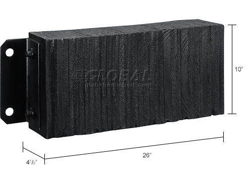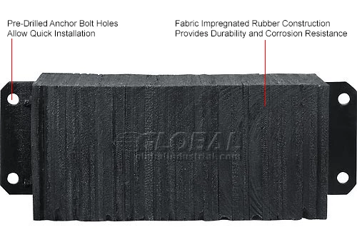 Tough plies of fabric impregnated rubber pads are compressed and secured by 3/4″ thick steel rods and mounted to 1/4″ thick angle iron brackets. Absorbs over 80% of the impact force. Pre-drilled 13/16″ anchor bolt holes offer quick installation. Allow 12″ between each bumper for dependable protection.