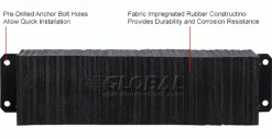 Tough plies of fabric impregnated rubber pads are compressed and secured by 3/4″ thick steel rods and mounted to 1/4″ thick angle iron brackets. Absorbs over 80% of the impact force. Pre-drilled 13/16″ anchor bolt holes offer quick installation. Allow 12″ between each bumper for dependable protection.