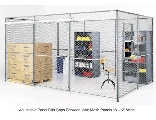 Use this adjustable-in-size panel to fill a gap ranging from 1-1/2″ to 12″ wide. Connects wire mesh panels up to 12″ apart. Durable steel. Gray powder coat finish.