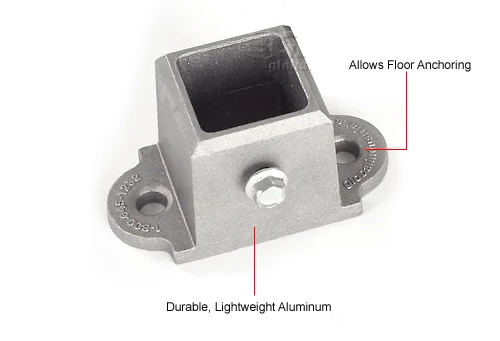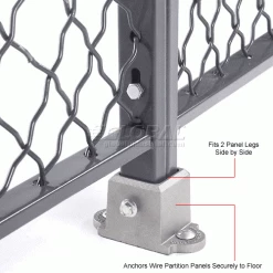 Allows floor anchoring to anchor post legs securely. Fits 2 panels side-by-side to keep panels in precise alignment and add strength and rigidity. Sold individually.