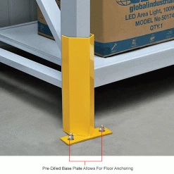 These Pallet Rack Frame Guards help prevent pallet rack uprights from forklift damage. Convenient frame guard is made of durable 9-gauge steel. Measures 3-1/8″W x 4″D x 12″H overall. Pre-drilled base plate with 9/16″ dia holes allows floor anchoring (Anchor Bolts not included).