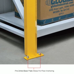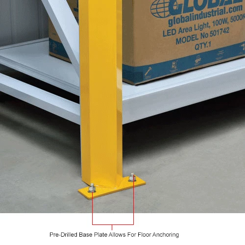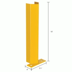 These Pallet Rack Frame Guards help prevent pallet rack uprights from forklift damage. Convenient frame guard is made of durable 9-gauge steel. Measures 3-1/8″W x 4″D x 18″H overall. Includes four Nuts & Bolts for mounting to pallet rack. Pre-drilled base plate with 9/16″ dia holes allows floor anchoring (Anchor Bolts not included).