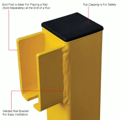 Global Industrial™ Steel Lift-Out Guard Rail End Post, Single-Rail, 20"H, Yellow