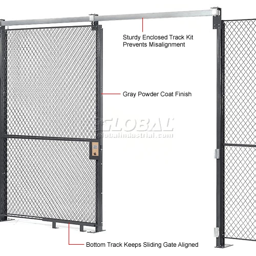 This 8-feet high 3-feet wide gate can be installed to slide in either direction. Features ball-bearing suspension and an enclosed sturdy track kit to prevent misalignment. Includes lock receiver and Gate Stop. Made using 10 gauge steel wire woven mesh in a 1-1/2″ diamond pattern. Framed in a 1-1/4″ x 5/8″ x 14-gauge cold rolled C-channel frame. Wire mesh is clinched (Not welded) into frame for strength. Gray powder coat finish. Includes built-in mortise cylinder lock with two sets of keys, keyed alike. Please note that the track kit is 10′