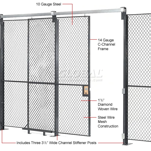 This 8-feet high 5-feet wide gate can be installed to slide in either direction. Features ball-bearing suspension and an enclosed sturdy track kit to prevent misalignment. Includes lock receiver and Gate Stop. Made using 10 gauge steel wire woven mesh in a 1-1/2″ diamond pattern. Framed in a 1-1/4″ x 5/8″ x 14-gauge cold rolled C-channel frame. Wire mesh is clinched (Not welded) into frame for strength. Gray powder coat finish. Includes built-in mortise cylinder lock with two sets of keys, keyed alike.