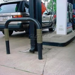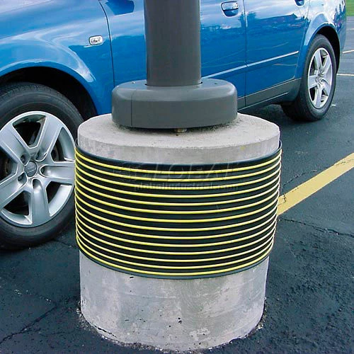 Flexible protective wrap is ideal for use on concrete light pole bases, floor-to-ceiling columns, concrete walls, railings and many non-standard bollard applications. Great for car dealerships, public and municipal parking lots, valet stations, gas stations, warehouse and more. Made of extruded, flexible PVC vinyl material that is 12″W x 1/2″ thick. 25’L roll can be cut to any size, length or shape. Black and yellow striped color. Easy to install using Heavy Duty Cable Ties or Poly Strapping (sold separately). Straps and ties can be easily hidden in internal channels of bumper wrap.