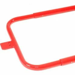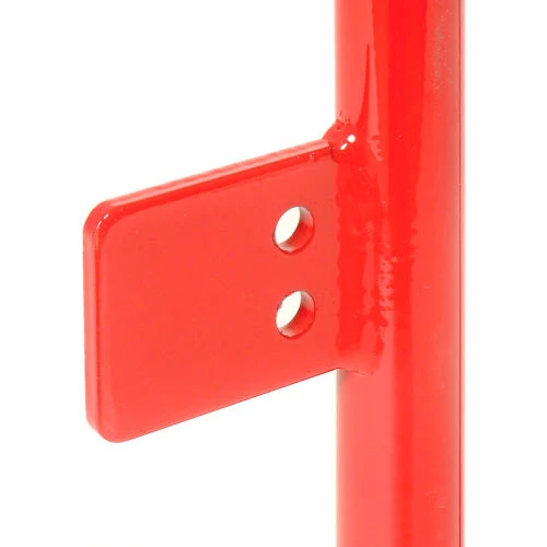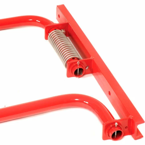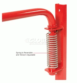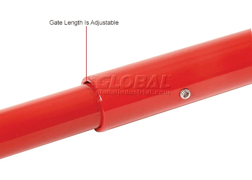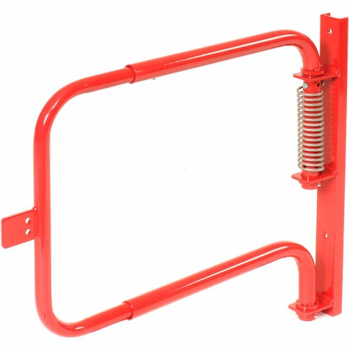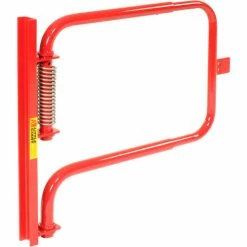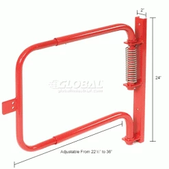 Adjustable width 22-1/2″ to 36″. Set screws secure at desired width. Stainless steel torsion spring closes the gate automatically. Spring is tension adjustable, and reversible. Helps in confirming to OSHA 1910.29 requirements. Powder Coated red finish (except spring). Outside tubing 1.37″ OD x 12g wall. Mounting channel is 2″ x 1″ with two mounting holes (hardware not included). Can mount on either the left or right side. Gate only swings one way.