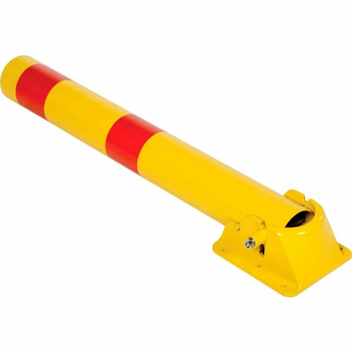 The fold-down bollards are ideal for industrial and distribution facilities. The heavy duty, steel construction is durable and long lasting through the harshest of environments. Designed with a powder coat yellow finish for clear visibility and a top mounted eyelet for use with safety chains or ropes.