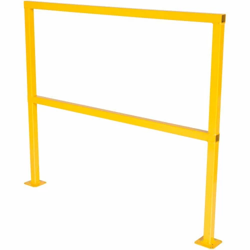 Steel guard rails are great for loading docks, floor openings, walkways and mezzanines. Guardrails are made with heavy duty 13-gauge 1-5/8″ square tubular steel with high visibility yellow powder coat finish. Each section includes 2 rails and 2 upright posts. Measures 42″H overall with 21″H mid-rail.